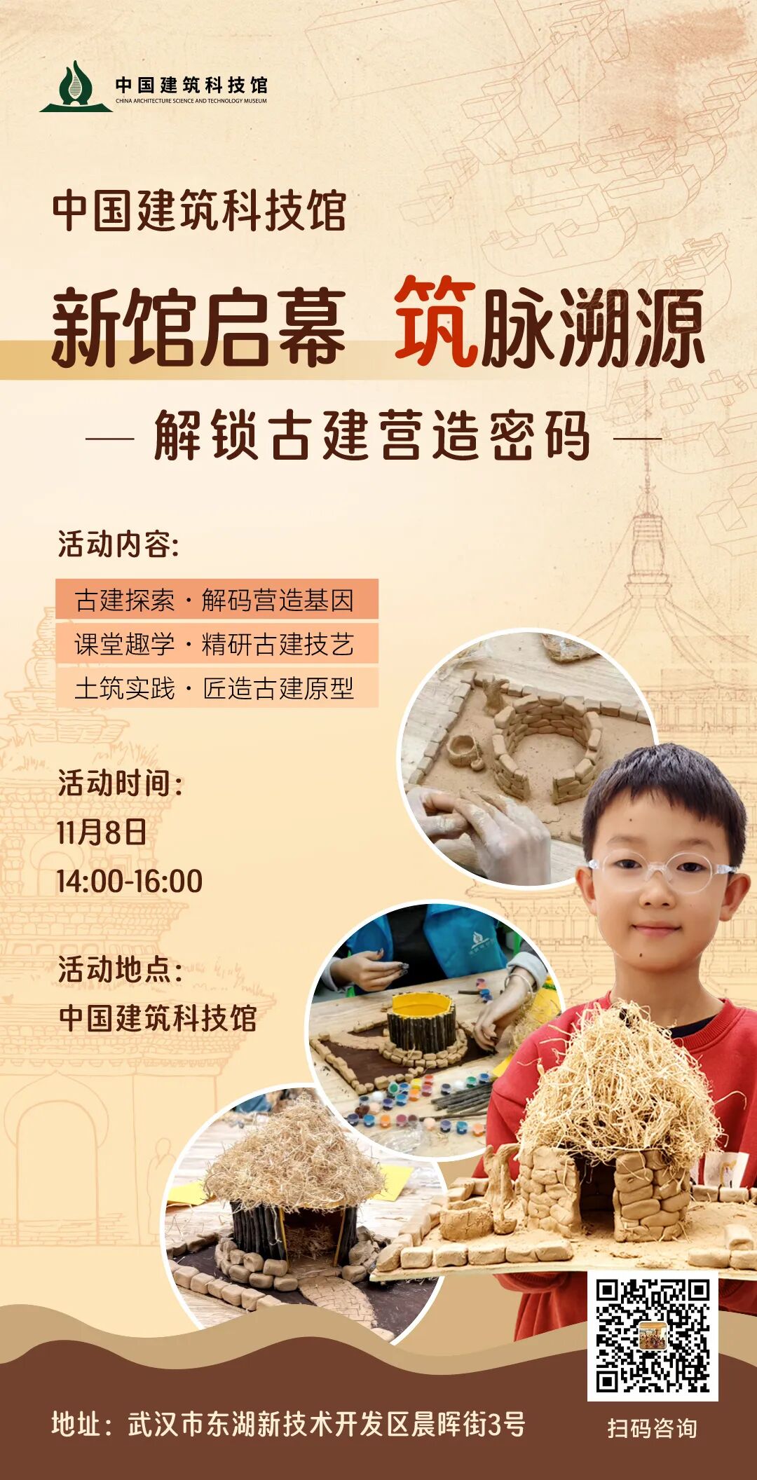 全新升级后的古代展厅,邀你和孩子一起,化身 “千年营造师”,在展品观察、闯关互动、动手实践中,解锁古代建筑的千年密码,开启一场 “看得见、摸得着、玩得懂” 的文化探索之旅!