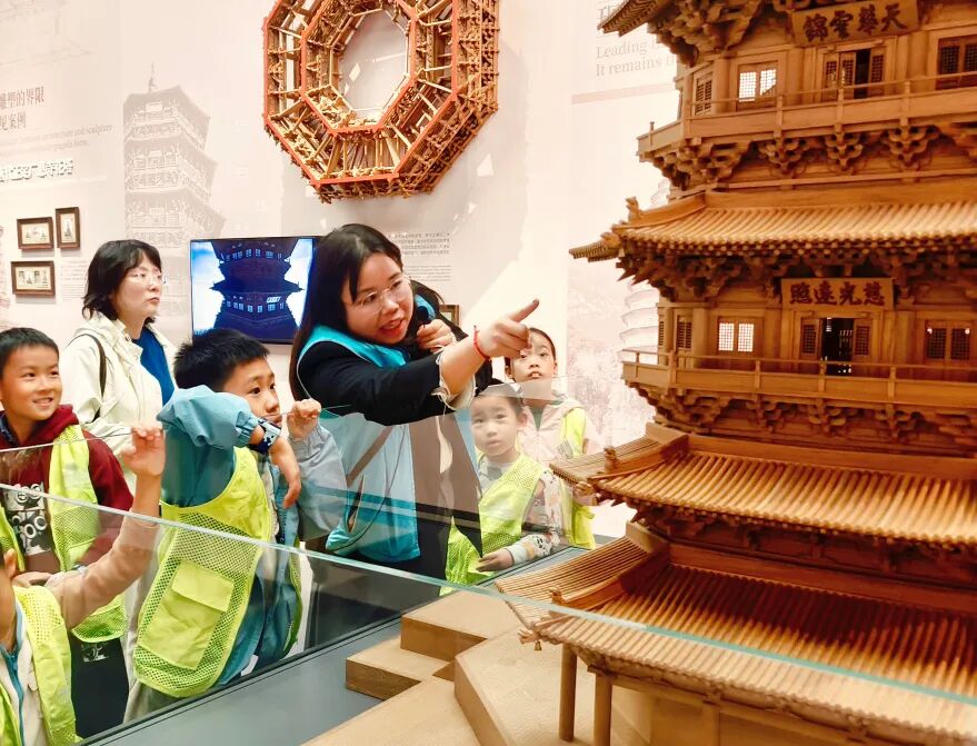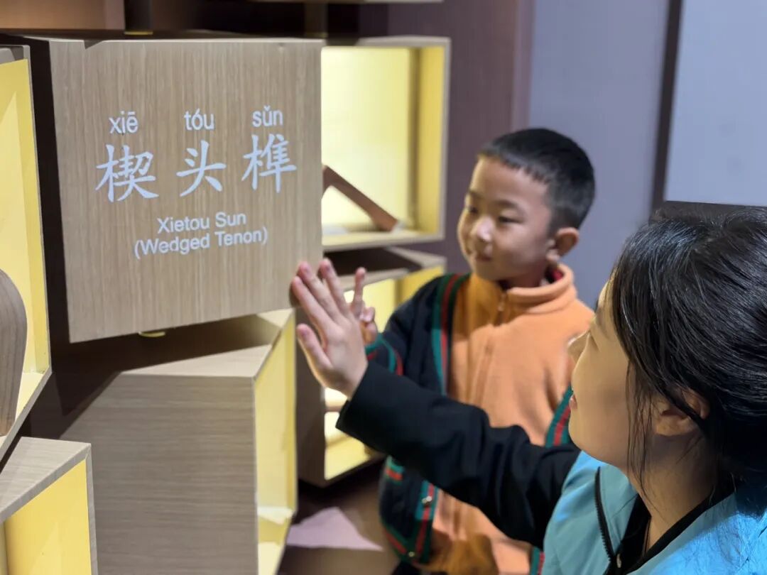 角色任务:在展厅的木构模型中寻找 “燕尾榫”“楔钉榫” 与 “透榫”,指出它们的具体位置并说明基础功能,成功识别即可获得勋章。