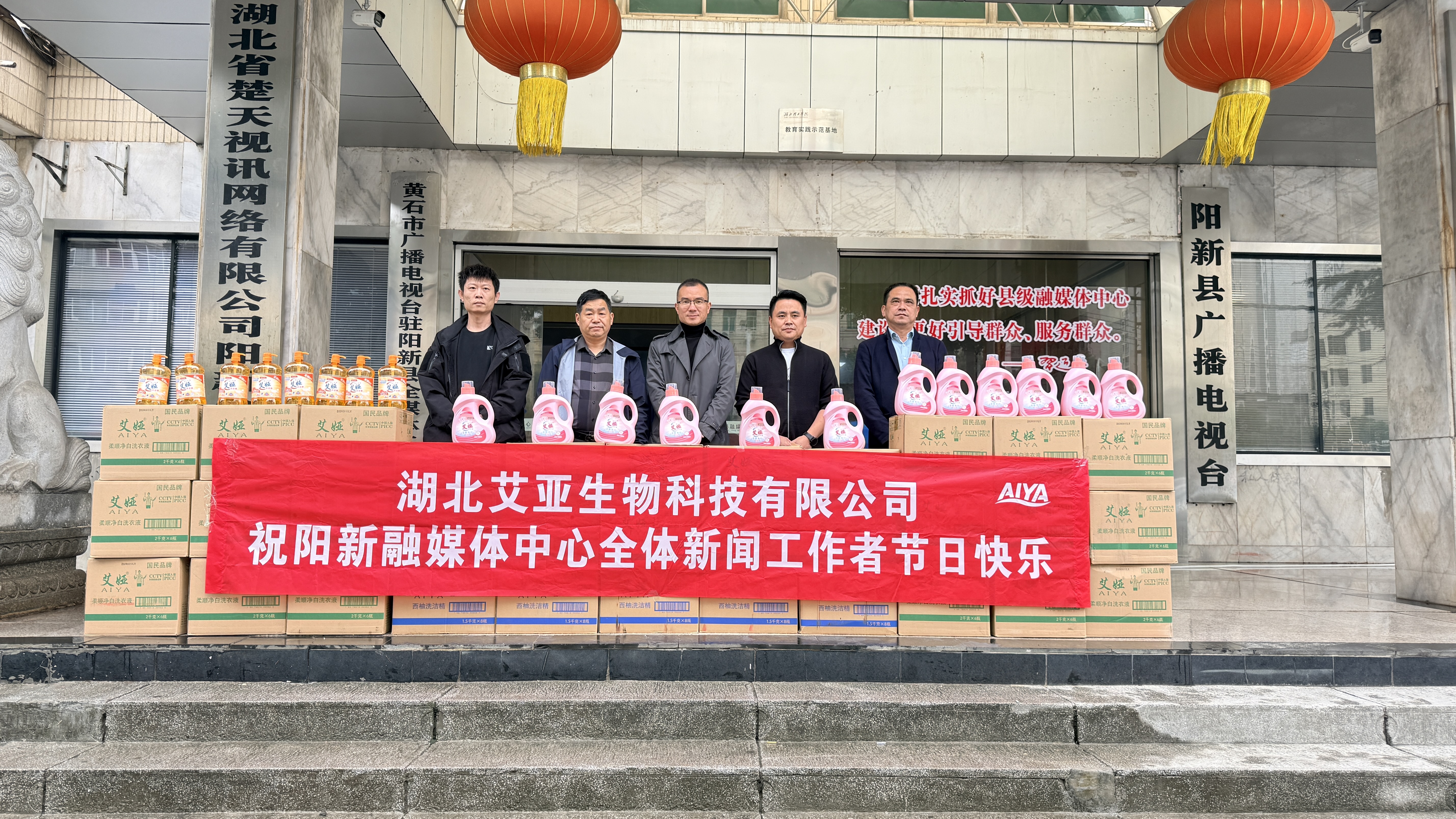 湖北日报客户端讯(通讯员黄晶晶)在第26个中国记者节来临之际,11月7日上午,湖北艾亚生物科技有限公司与天牛生活超市相关负责人一行走进阳新县融媒体中心慰问坚守一线的新闻工作者,并送上洗衣液、洗洁精、新鲜水果等慰问物资,致以节日的诚挚问候。