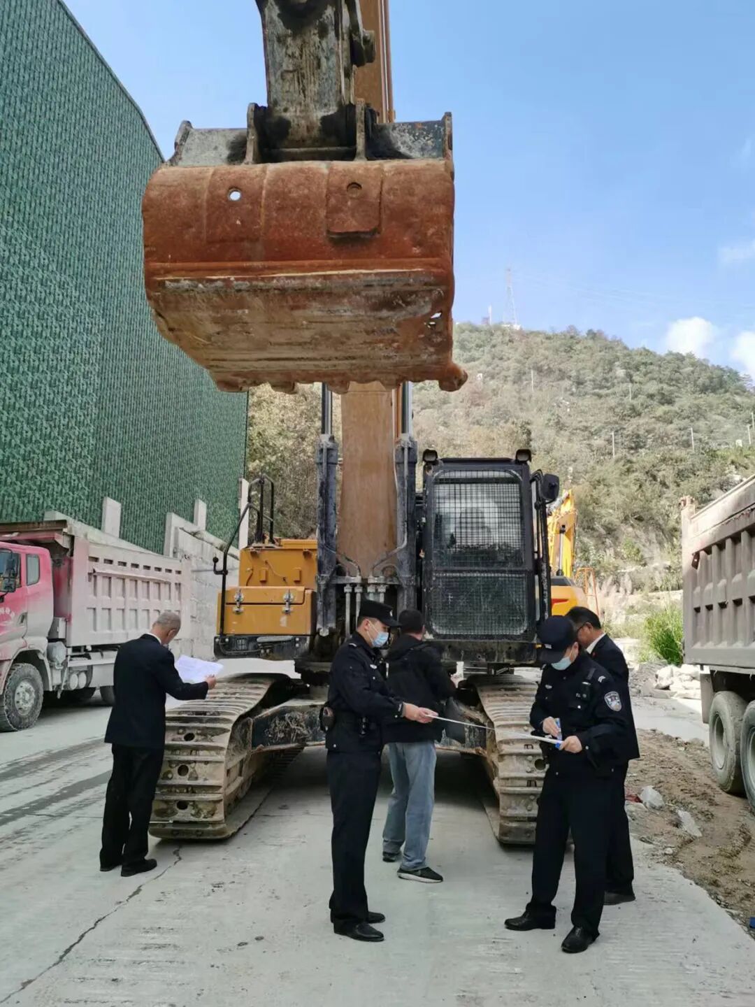 考虑到九台挖机均位于外地,执行法官未雨绸缪,事先与麻城市人民法院取得联系,请求协作配合。随后,组队驱车直奔挖机所在地。