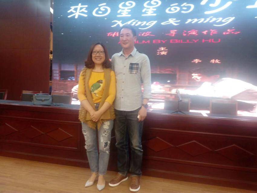 (2018年在沙洋中学礼堂,作者与胡导合影)