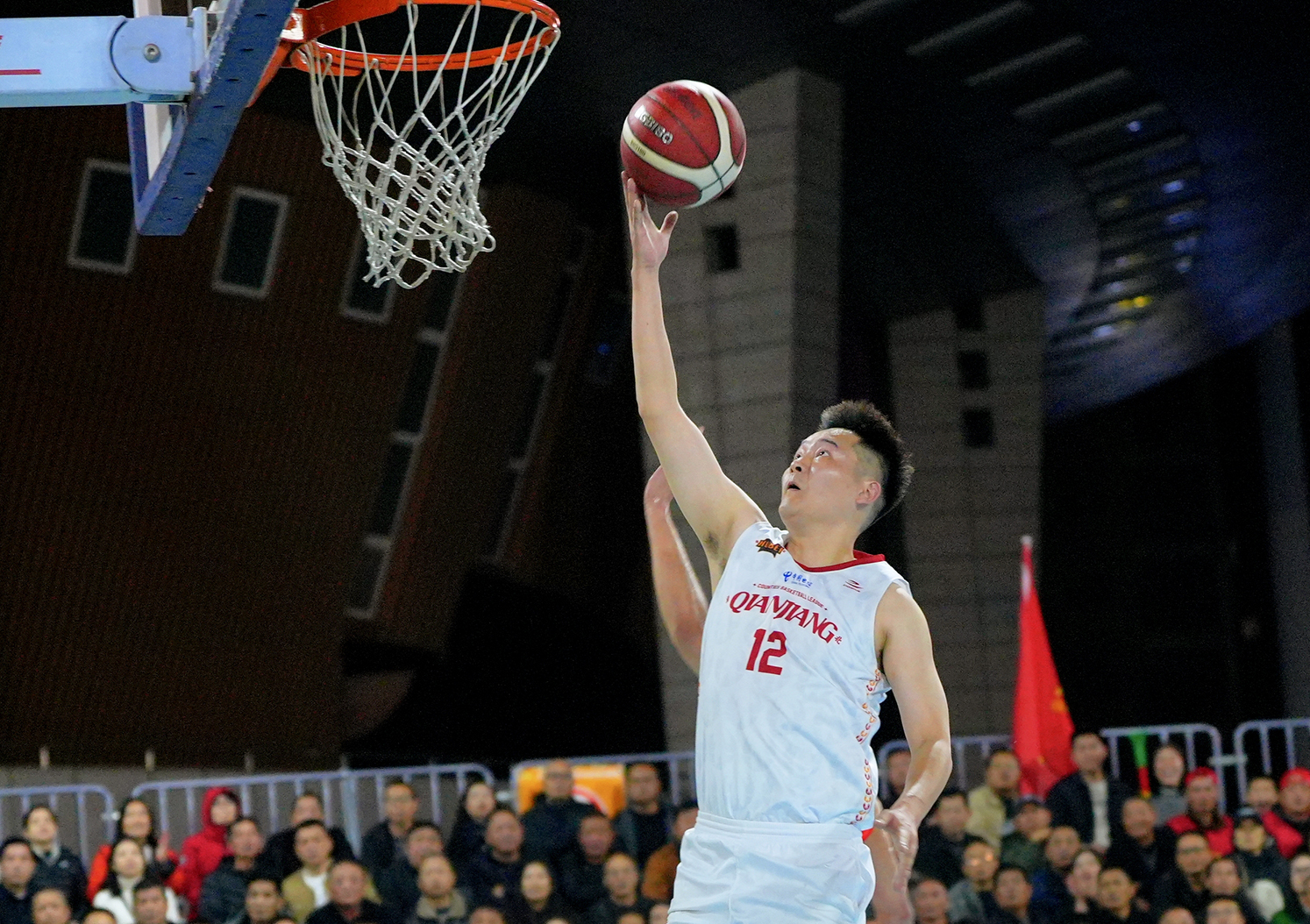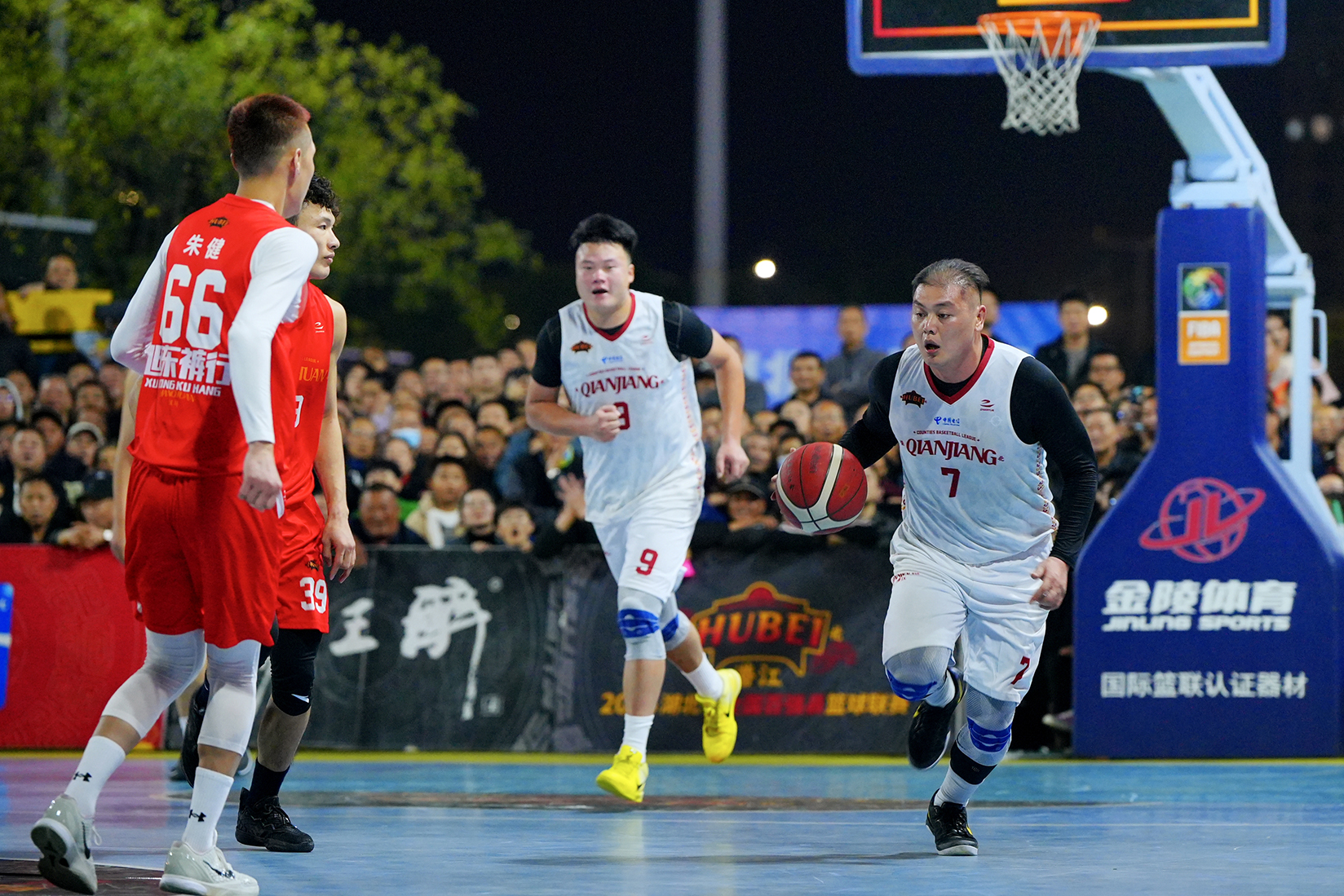 当晚的市民体育中心球场座无虚席,红色助威旗与加油声织成热浪。比赛开局,潜江队12号蒋敖跳投拿下首分,汉川队迅速反扑,凭借快攻与远投连续得分,首节结束时潜江队12:18落后;第二节分差进一步拉大至11分,场边观众的呐喊声都染上了焦急。