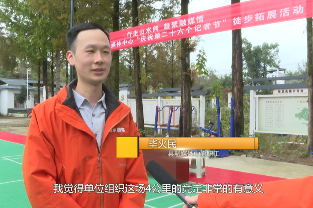 县融媒体中心职工毕火民:今天,是第26个记者节,我觉得单位组织4公里竞走活动,非常有意义。拿到第一名,不仅得益于自己的体力,更重要的是团队一直在给我加油和打气,是优秀新老同志给了我力量。