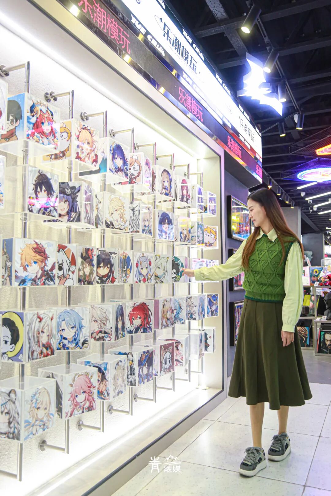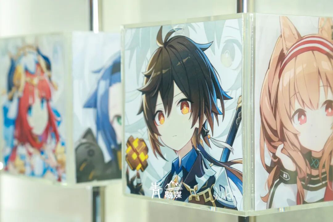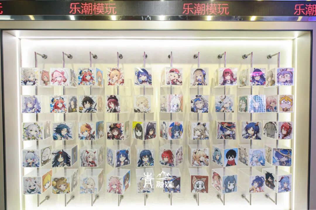 甚至为沉迷二次元的各位特别开辟了旋转魔方打卡墙,用转筒魔方展示各种人物,以《原神》自机人物居多,你也可以把你喜欢的立绘图案打印出来,放入魔方墙作为纪念。