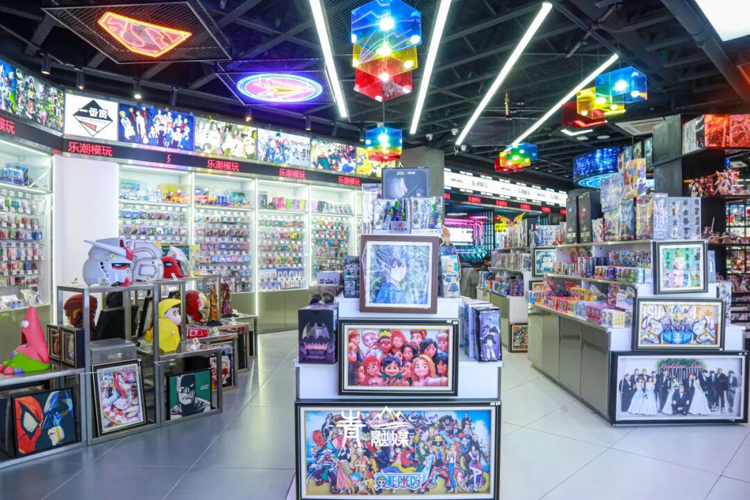 店里大致分为:谷子、盲盒、手办、休闲娱乐等多个区域,各有各的乐趣。层高3.5米,格外通透,宽阔明亮,逛起来一不小心就会沉浸其中,不能自拔。