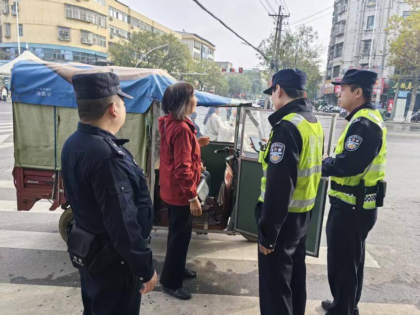 警社联动劝导,织密辖区“安全网络”。北城派出所还积极联动社区网格员、物业工作人员、志愿者等力量,组建“警社联动劝导队”。在早晚出行高峰时段,劝导队在辖区重点路段开展巡逻劝导,对发现的电动三轮车违法载人行为,当场上前制止并进行教育引导,告知驾驶员违法载人的危害,督促其立即纠正。同时,劝导队还协助民警向周边群众普及交通安全知识,形成“民警主导、群众参与”的共治格局。