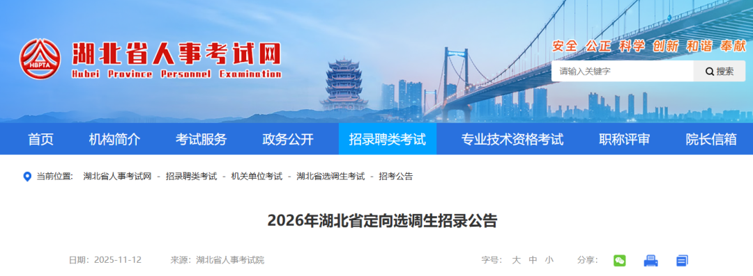 2025年12月7日(星期日),在武汉市组织笔试。考生于2025年12月3日10:00至12月7日8:00登录报名系统下载并打印笔试准考证。
