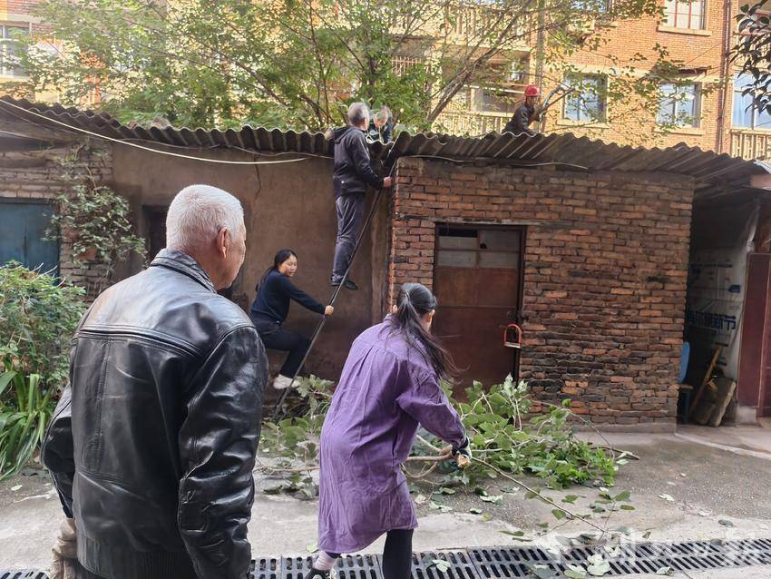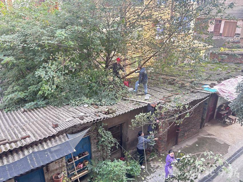 党员钱海君说自己经常在学校帮忙修剪花园树枝,对于危树的处理自己也是比较有经验的。他同工农村小区第三党支部书记刘传忠,带领快马服务队志愿者主动接单,组建一支“党员志愿者先锋队”,主动参与到辖区危树处理工作中。