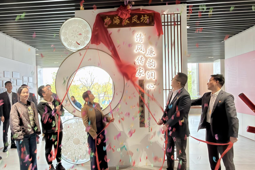 随着“3、2、1……”的倒计时与礼炮声响,汉阳区妇联、建桥街道、古楼社区及中海物业武汉公司相关负责人共同缓缓揭下红绸,“中海家风坊”正式揭牌,现场响起热烈掌声。揭牌仪式后,与会人员在中海物业讲解员的引导下参观了“家风坊”,并围绕进一步发挥阵地教育功能、深化家风文化建设等议题展开交流。