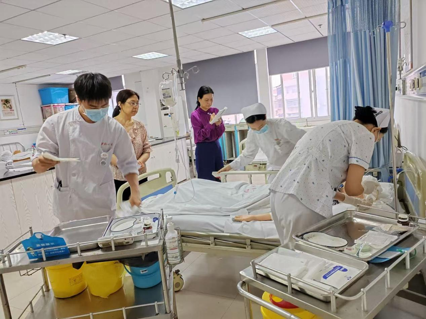 本次竞赛聚焦临床护理核心能力,采用高仿真模拟人还原复杂临床场景,全程实行封闭竞技模式。参赛选手需在5分钟内完成读题与用物准备,随后8分钟内围绕同一危重病例,协同完成3项随机护理操作,同时精准判断病情变化、采取应急护理措施,并现场回应评委提问。赛事不仅考验选手的基础操作技能,更对临床思维、应急决策与团队配合能力进行全方位综合考评,竞技难度与专业要求极高。