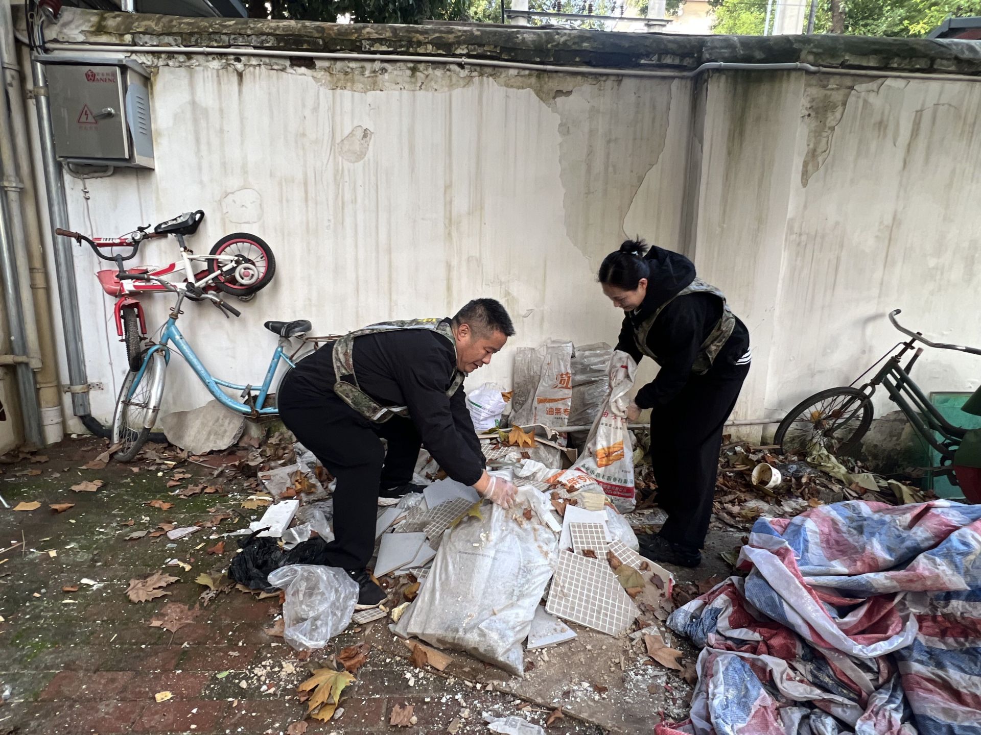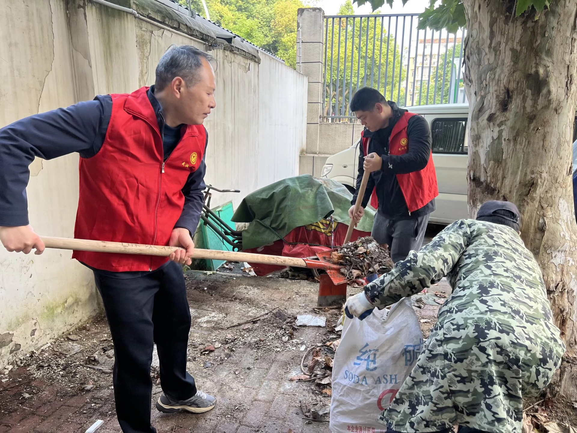 活动当天,社区工作人员与共建单位志愿者共计18人,手持夹子、铁锹、扫帚、撮箕等清洁工具,齐聚社区。大家充分发扬不怕脏、不怕累的奉献精神,分工明确,相互协作,重点对社区内长期存在的卫生死角、绿化带内的隐匿垃圾、公共区域的乱堆乱放等进行了“地毯式”的清理。志愿者们或用夹子捡拾烟头、纸屑,或用扫帚清扫路面,或用铁锹清运大件废弃物和堆积的杂物,现场一派热火朝天的劳动景象。