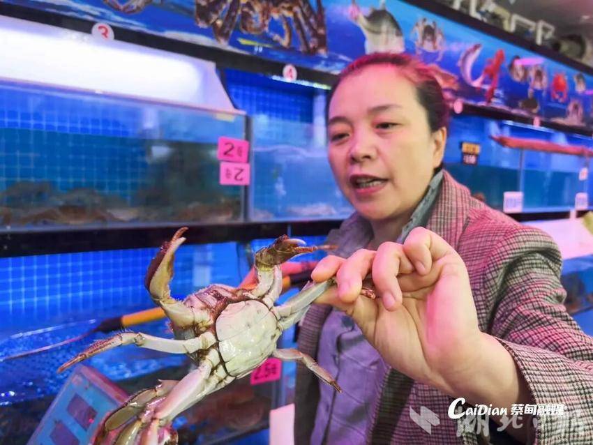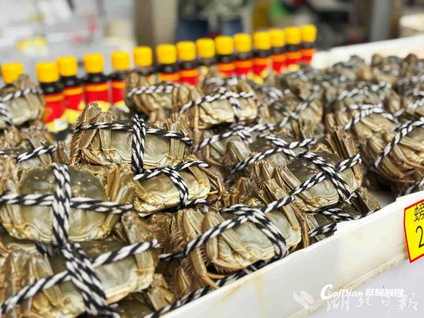 在中百超市生鲜区,蔡甸大闸蟹被陈列在醒目位置,吸引不少市民驻足选购。一位正在挑蟹的市民表示:“蔡甸水质好,螃蟹品质有保障,打算多买些送亲友。”