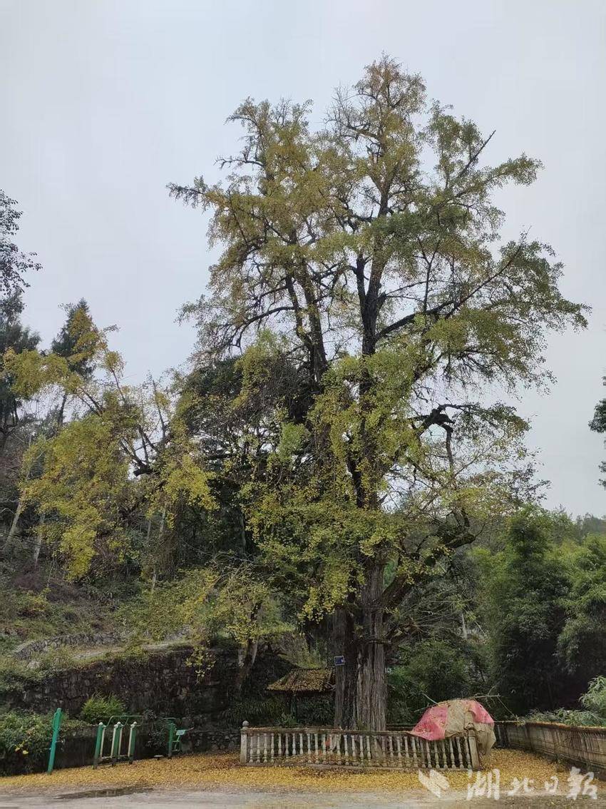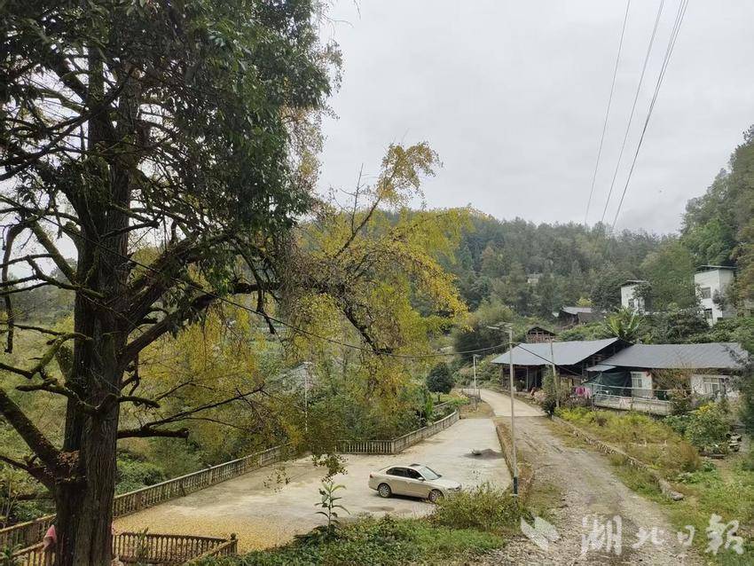 湖北日报讯(通讯员黄锋)在咸丰县清坪镇兰家沟村,有一个叫小桐木园的院落,该院落坐落在群山之中,有21户人家和睦而居。院落正中有一株高大挺拔的银杏古树格外显眼,见证着院落400多年的荣辱兴衰。古老粗糙的树皮仿佛饱经岁月风霜的老人手上的茧。银杏叶的金黄与山中枫叶的火红、松针的翠绿相映成趣,勾勒出一幅静谧而美好的乡村画卷。