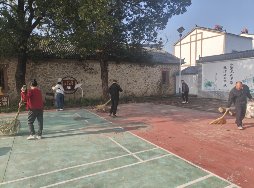 此次行动以“干部带头、党员先行”为原则,村两委班子成员率先垂范,将村委会周边定为首个整治示范点。现场人员手持扫帚、铁锹等工具分工协作,重点清扫院落卫生死角,清运绿化带及道路两侧的生活垃圾、枯枝落叶和废弃杂物,铲除墙面小广告,并规范物料乱堆乱放问题。经过集中整治,村委会周边路面整洁、绿化带规整、墙面干净,为全村整治工作树立了样板。