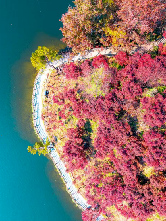 清凉寨的红叶品种多、面积大,到了深秋,漫山红遍,层林尽染,其壮观程度不输任何名山。沿着步道攀登,如同穿行在火焰般的红色长廊中。