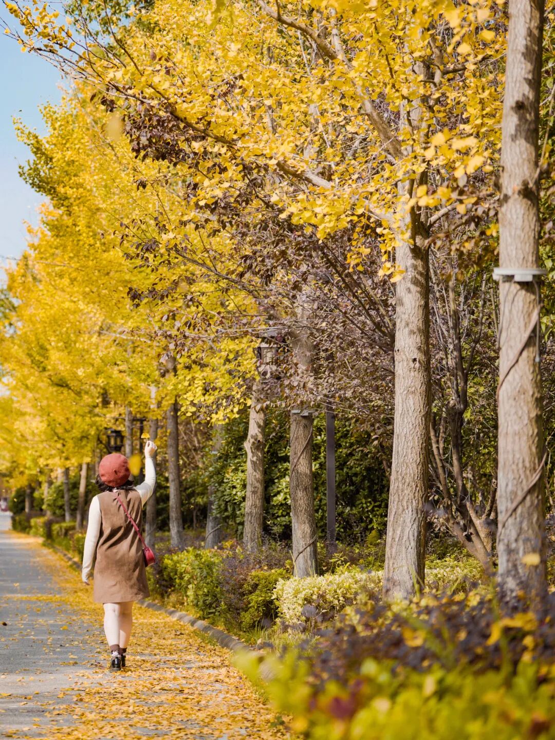 走在铺满银杏叶的小道上,沙沙作响,阳光透过缝隙洒下斑驳的光影,随手一拍都是“电影大片”。