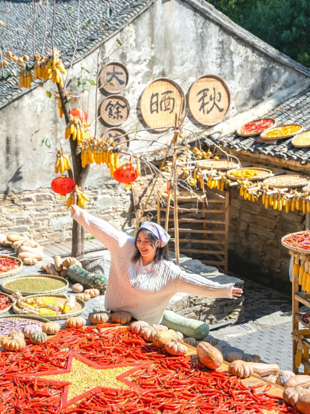 从木兰山的壮阔中归来,直接闯入大余湾的晒秋画卷里吧!古村在秋天换上了最华丽的衣裳。