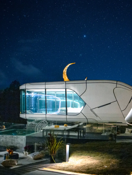 树影行星:未来感十足的民宿,躺在床上就能看星空,浪漫指数爆表。