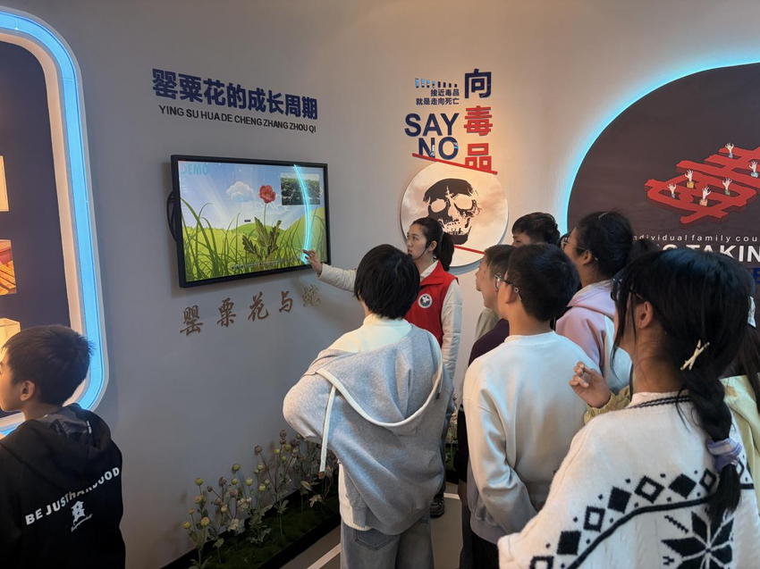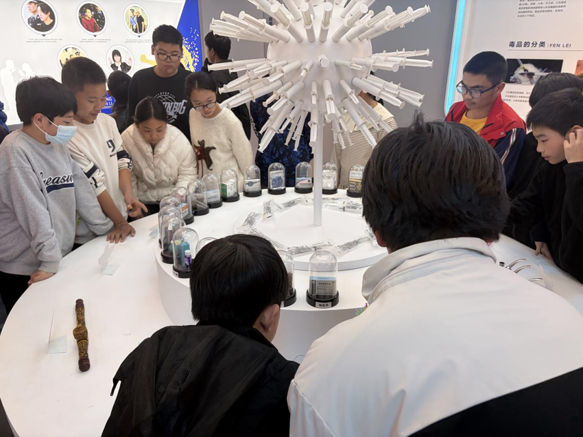 在互动实验室,工作人员展示了伪装成“糖果”“贴纸”“饮料”的新型毒品模型,并引导学生们通过观察、触摸等方式进行辨识。“原来毒品可以伪装得这么隐蔽,以后收到陌生人的零食一定要谨慎!”一名女生仔细对比模型后感叹道。