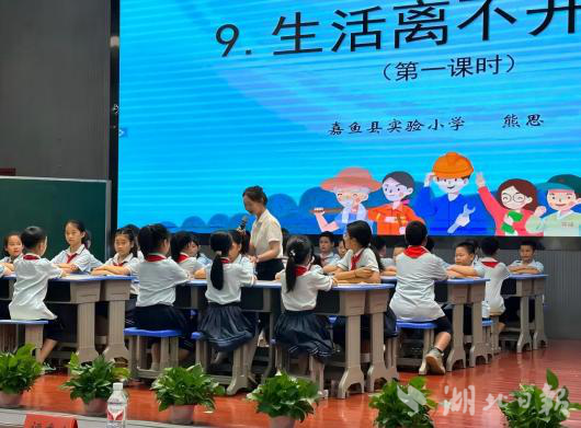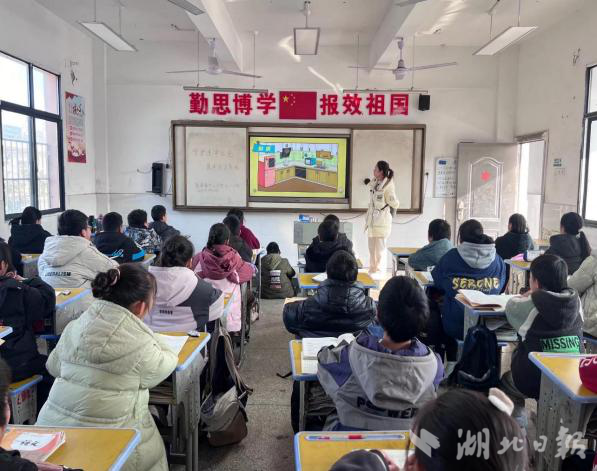 (熊思老师在嘉鱼县实验小学上课照片)