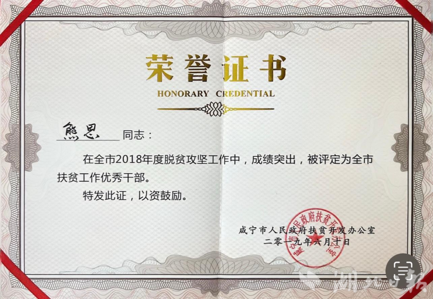 (2017年荣获“咸宁市优秀扶贫干部”)