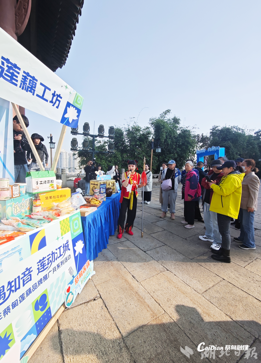 本次快闪活动以“‘藕’遇黄鹤楼 蔡甸‘潮’好玩”为主题,将蔡甸莲藕转化为兼具趣味与互动性的文化符号,通过“可品尝、可互动、可传播”的体验设计,让游客在登黄鹤楼览胜之余,沉浸式感受蔡甸莲藕文化的魅力。