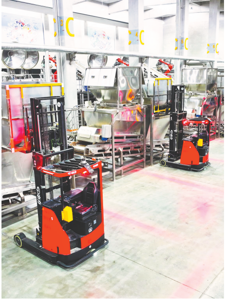 经过多轮互访调研,双方正式合作,为发酵车间量身打造无人叉车系统。很快,中力机械派出6名工程师驻场,两个团队一起查数据、改方案,高效推进研发。