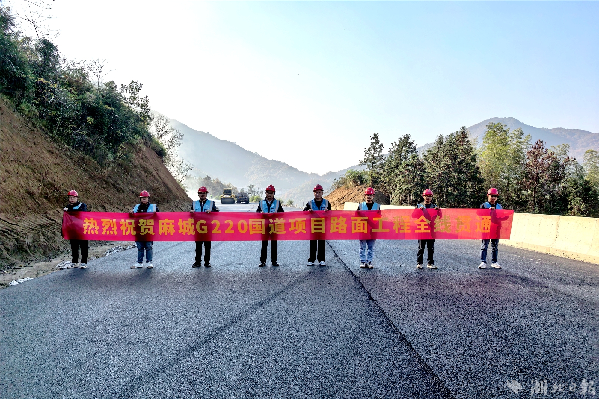 湖北日报客户端讯 (通讯员张中平、王一卓)11月16日,随着最后一段上面层沥青摊铺顺利完成,由中铁十局承建的G220国道麻城市商家垸(鄂豫界)至边店段新建工程项目实现沥青路面全线贯通,标志着该项目正式进入交安与绿化施工阶段,为年底全线通车奠定坚实基础。