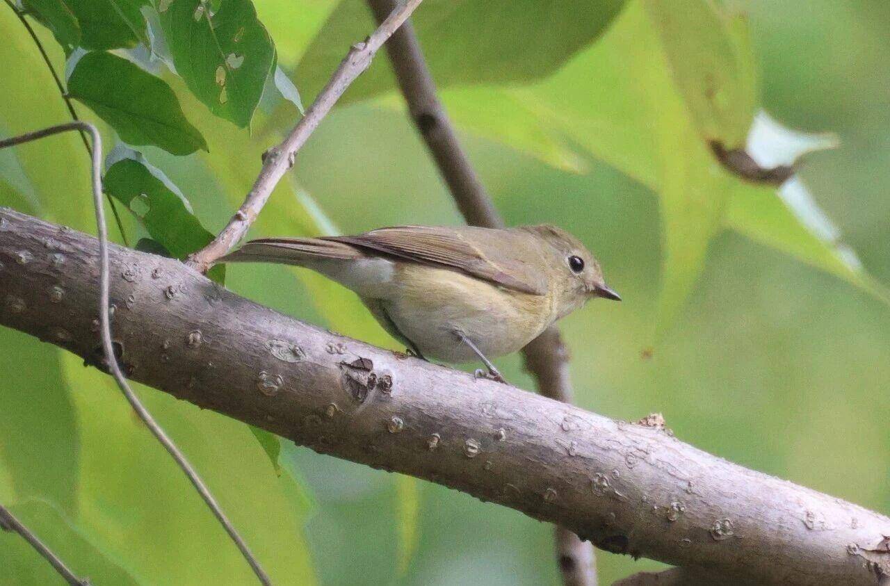 锈胸蓝姬鹟为安静的树栖性鹟,体型较小,通常在森林的中下层活动。通过拍摄的照片可见,此次记录的锈胸蓝姬鹟为雌鸟,体色较暗淡,上体橄榄褐色,下体浅灰褐色。有明显的浅色眼圈,眼线较浅。翼上覆羽有一道浅色翼斑,尾羽基部没有白色。喙较短,上下喙均为黑色。