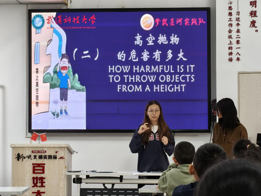 据了解,项目前期,社区与校方经深入调研策划,结合社区公共安全与环境秩序长期观察结果,确定高空抛物、不文明停车、垃圾分类、火灾防范及电信诈骗五大代表性议题作为系列活动核心。武汉科技大学外国语学院发挥专业优势,融入“双语教学”特色,让学生在学习安全与公德知识的同时掌握相关英语表达,提升综合素养,既贴合社区实际需求,又兼具教育前瞻性。