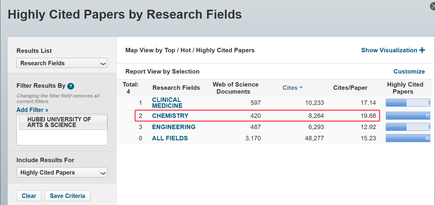 ESI是基于科学引文索引(SCI)和社会科学引文索引(SSCI)收录文献记录建立的计量分析数据库,已成为全球范围内用于评价高校学术水平及影响力的重要指标工具之一。湖北文理学院化学学科的入选,标志着该学科在研究水平、学术影响力与创新能力等方面迈入国际领先学科行列。