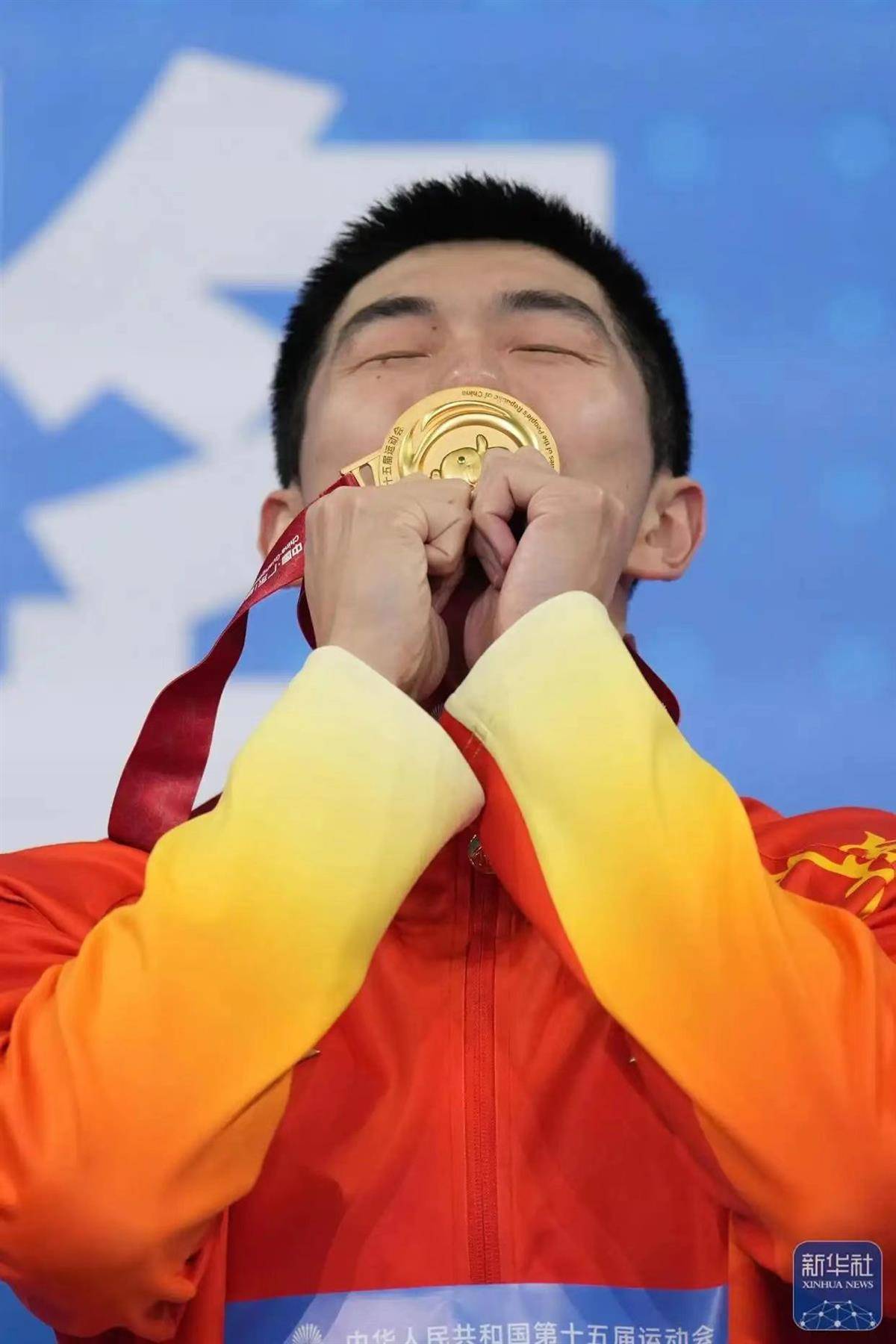 湖北队选手闫子贝在颁奖仪式上亲吻金牌。 新华社记者 薛宇舸 摄