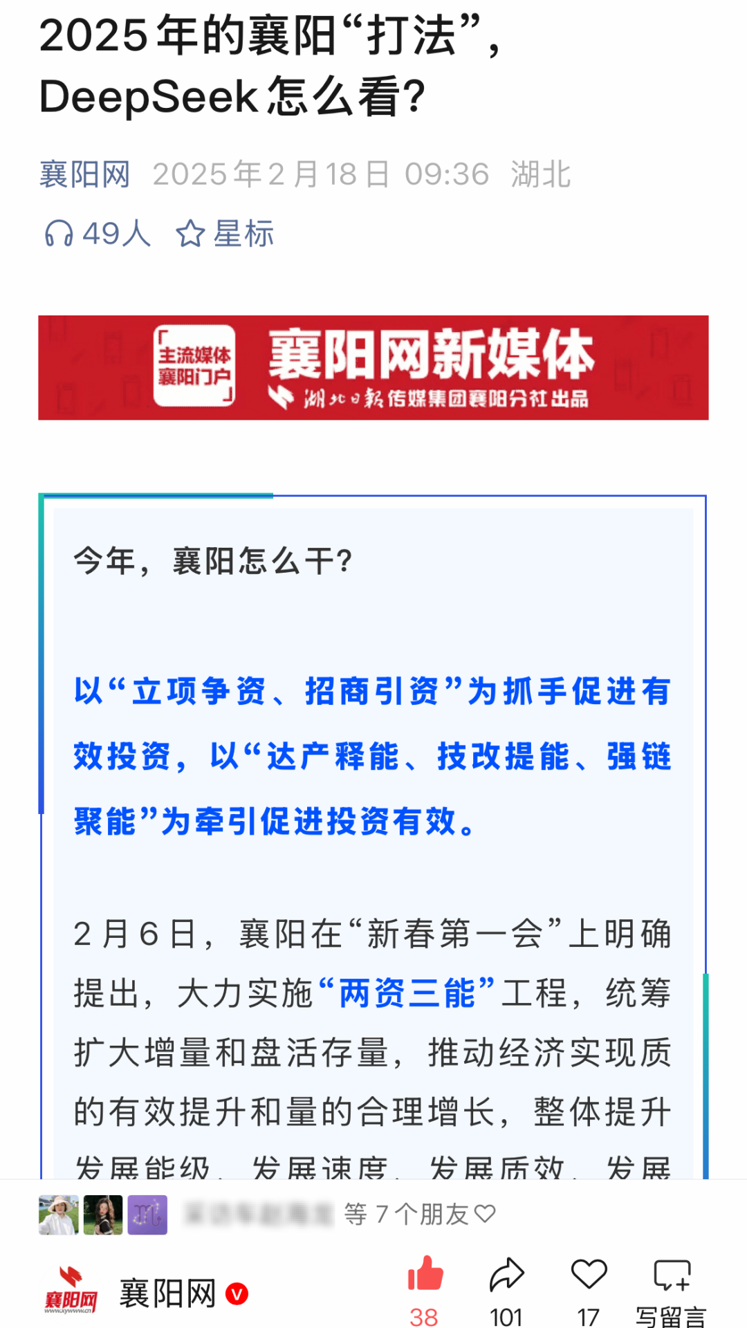 推出“DeepSeek看襄阳”系列产品