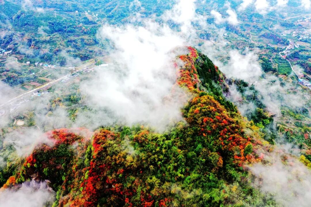 这座高山曾是宜昌保卫战的前沿阵地,是当年长江南岸诸多野战工事中保存比较完好的一部分。正值秋色最绚烂的时节,一路美景如画。