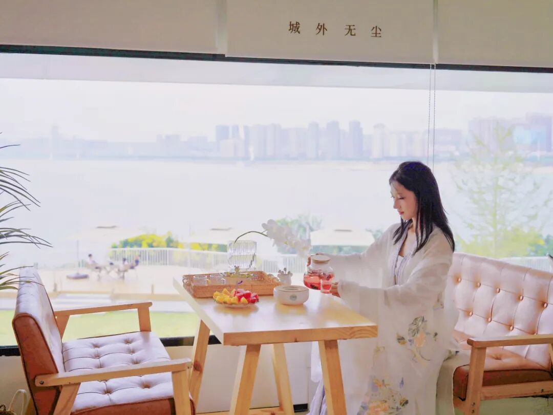 艾家集镇上尘外·西江月吃午餐,坐在观景台上看远处江景,让拂面而来的缕缕江风治愈你。
