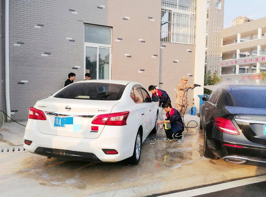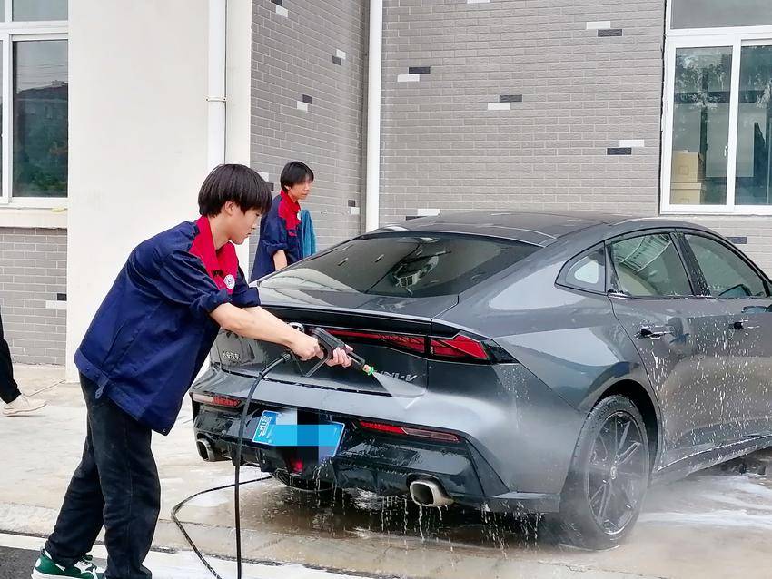 此次活动,由汽修专业师生联袂组织,为锻炼学生的职业素养和专业能力,接待区里,学子化身“服务顾问”,引导停车、信息登记、茶水供应等环节井然有序,标准礼仪与耐心服务尽显良好职业风貌;洗车现场更成专业实操舞台,汽修专业教师全程在岗指导,围绕水压控制、清洁剂配比等关键技能手把手教学,“预洗防刮漆”“分区清顽固污渍”等细致讲解,让学生精准掌握实操要点。高压水枪精准冲洗、海绵轻柔擦拭、抹布分类使用,学子们专注操作每一个细节,让待洗车辆焕然一新,获现场师生一致好评。