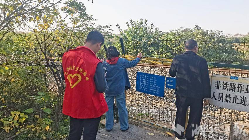 湖北日报客户端讯(通讯员徐翠云、杜彬彬)近日,钟祥市九里回族乡肖店社区网格员化身“铁路安全宣传员”,开展铁路沿线常态化巡查工作,切实保障铁路运输安全畅通,守护沿线群众生命财产安全。
