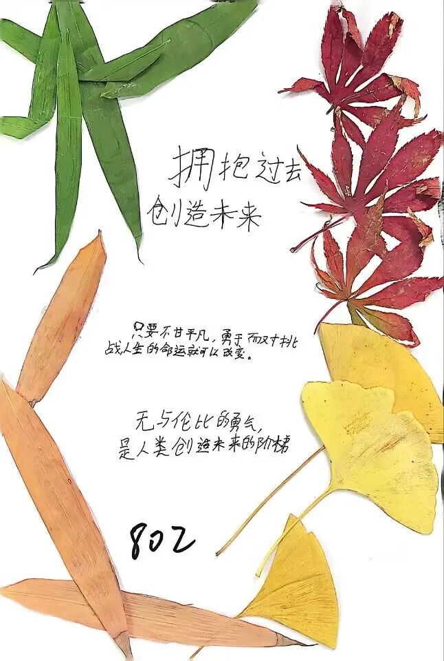 “青春期是自我认知成型的关键阶段,也是情绪管理能力培养的黄金时期。”曹敏看着同学们的作品深有感触地说。她介绍,“落叶的重生”活动是学校将积极心理学融入体验式教育的创新实践,“我们不用生硬的说教,而是让孩子们在触摸自然、动手创作中直观感受:生命的每个阶段都有独特价值,低潮期恰是积蓄力量的‘重生契机’。这种温和的引导,更易让心理韧性的种子扎根。”