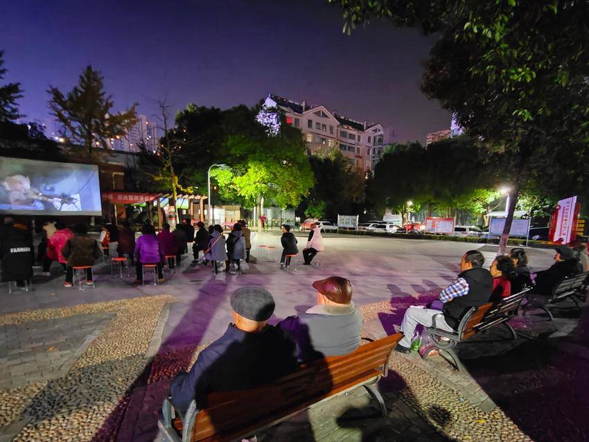 湖北日报客户端讯(通讯员陈华琴、章辉玲)11月20日晚,襄阳高新区团山镇江山社区在馨园小区东广场组织开展红色公益电影放映活动,邀请辖区居民共同观看经典影片《百团大战》,在光影流转中回望革命岁月,于红色故事中厚植家国情怀。