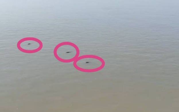 3头江豚在长江中嬉水。通讯员范志卿 摄