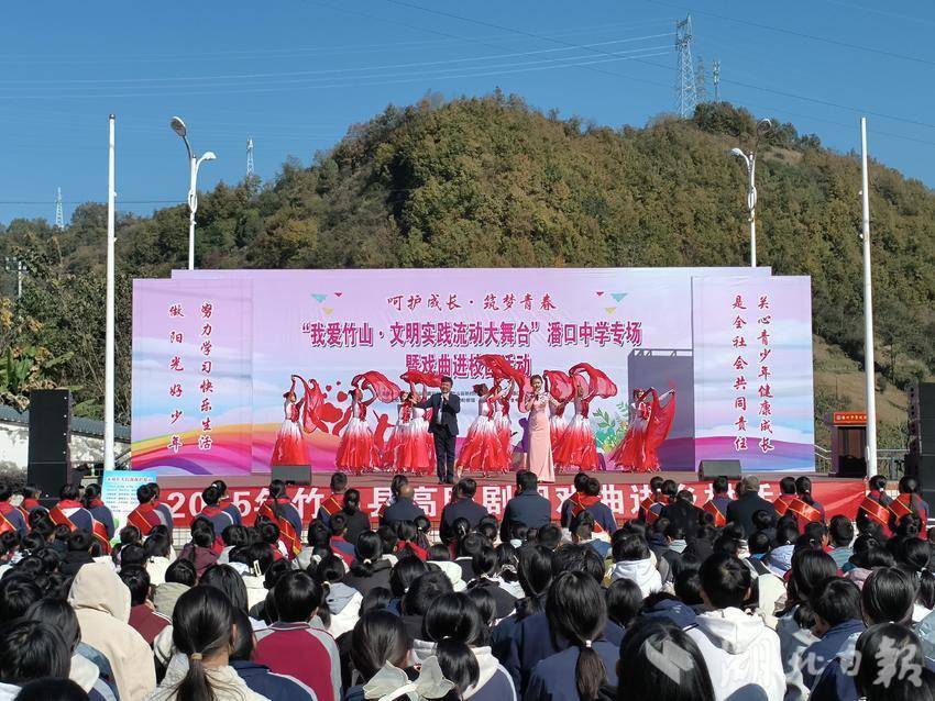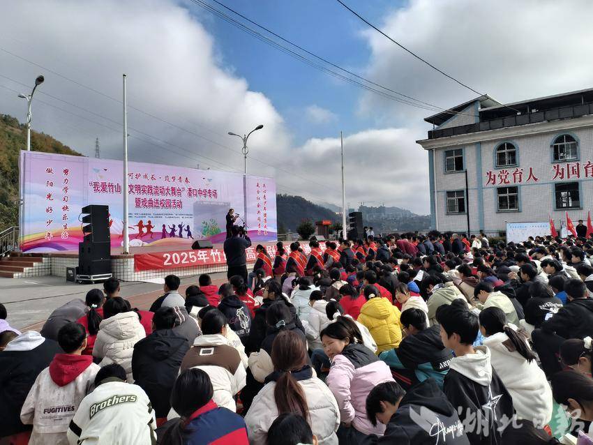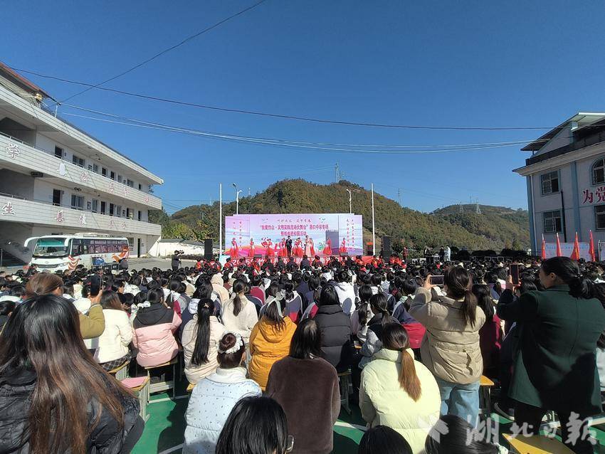 湖北日报客户端讯(通讯员 郭继强)11月21日,我爱竹山•文明实践流动大舞台活动走进竹山县潘口中学,蓝天白云间,一场呵护未成年人成长、筑梦青春未来的主题活动在师生的掌声中热闹开幕。