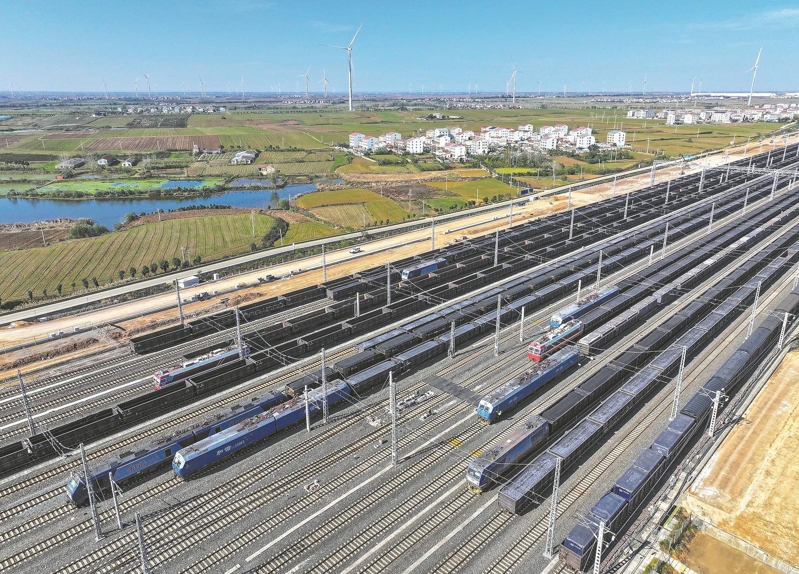 11月19日,襄州北站进行万吨列车分解、空车大列组合调车作业。(来源:襄阳日报 彭正权 胡静茹 摄)