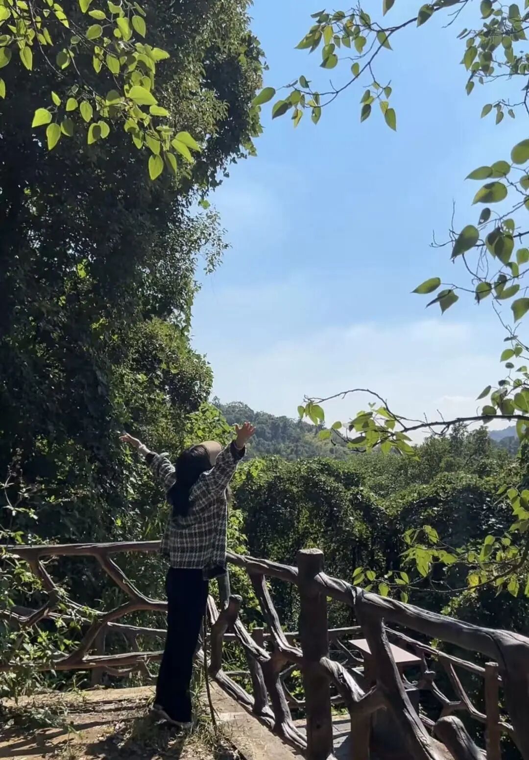 就连沿路的垃圾桶,也设计成树桩模样,仿佛是山林自然生长的一部分,尽显生态巧思。