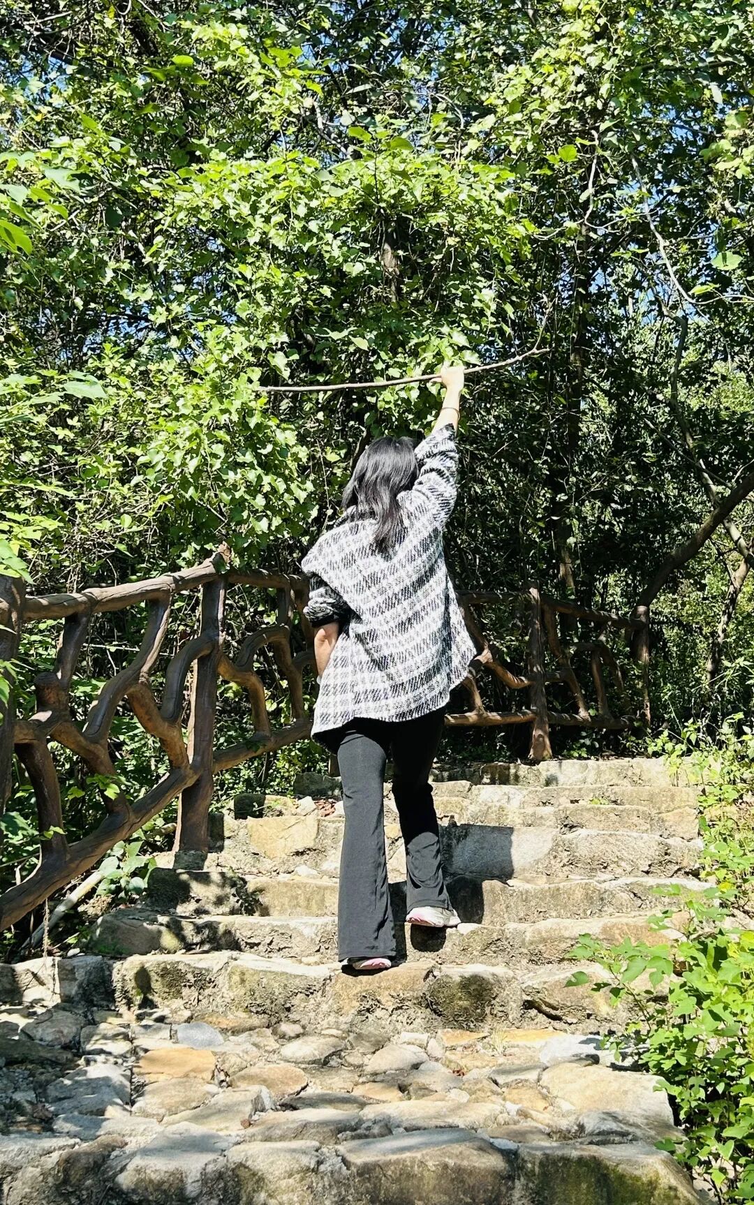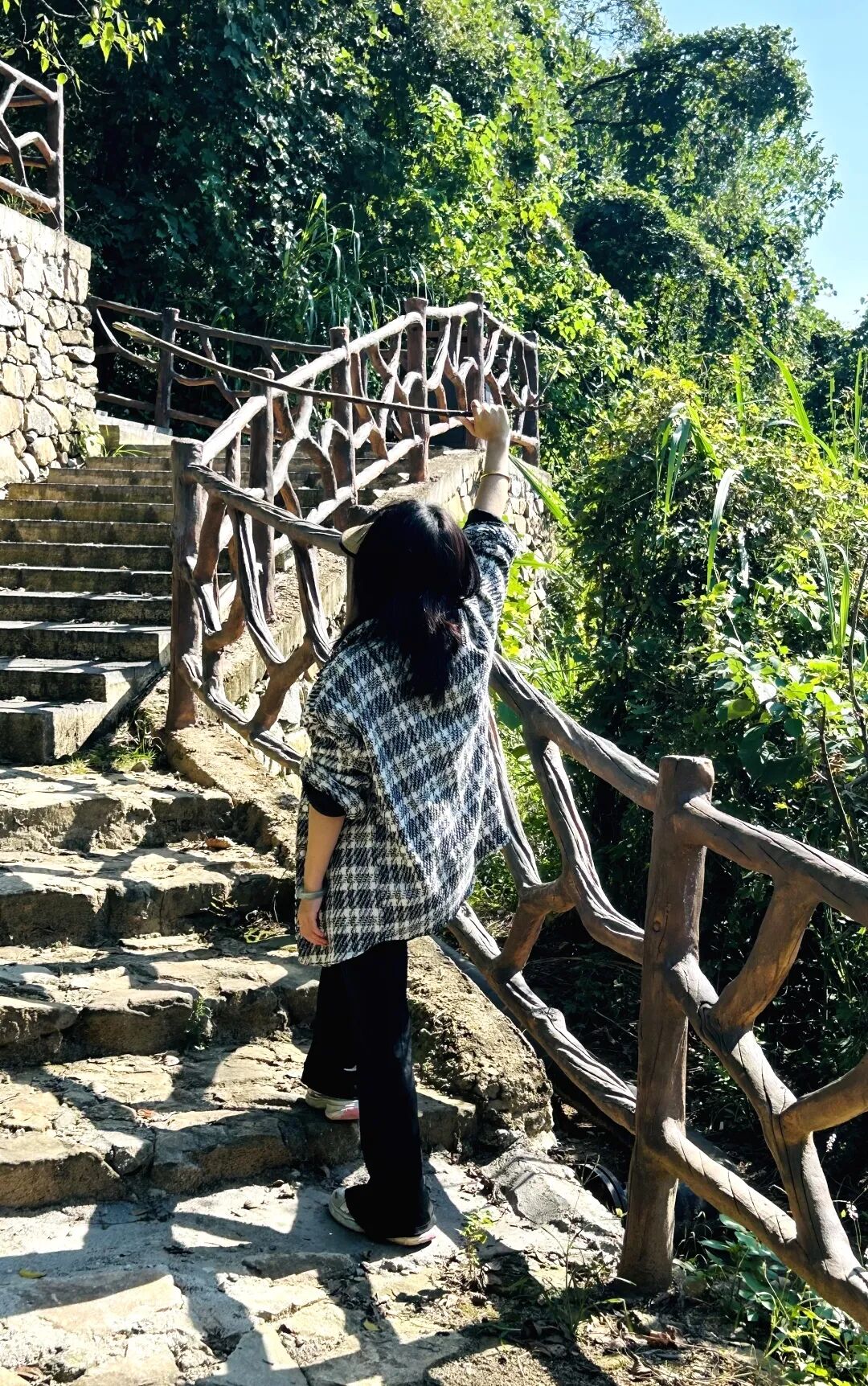 步道整体平坦,无需费力攀登,只需放慢脚步:脚下是被金黄落叶铺成的“浅褐绒毯”,踩上去窸窣作响。