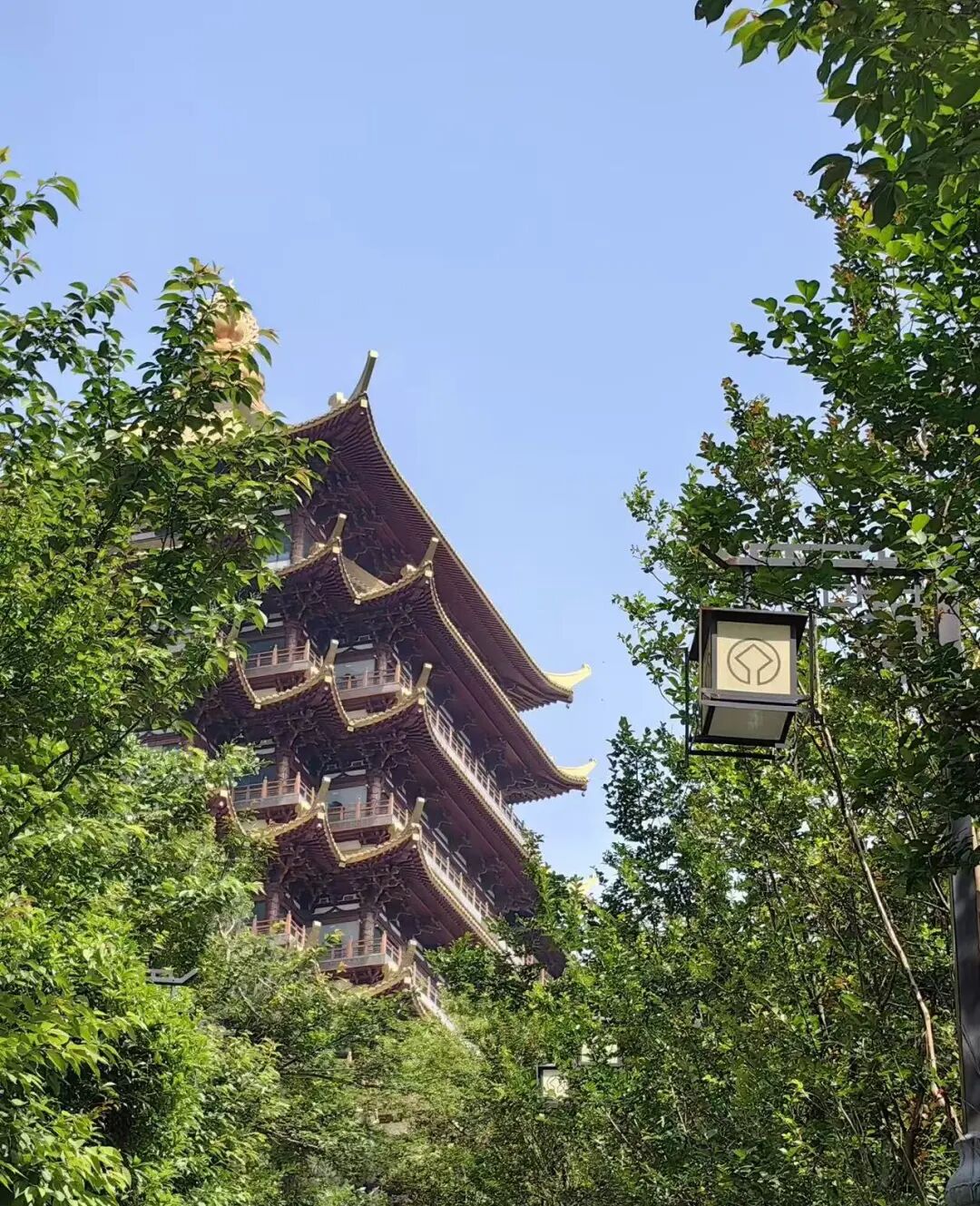 从观景台一路下坡,便抵达东方梵园酒店的后门。沿线的银杏树缀满金叶,风过处簌簌作响,暖黄的光影裹着步道往前铺展。游客可在此稍作休憩,随后沿盘山公路继续向终点东昌阁攀登。