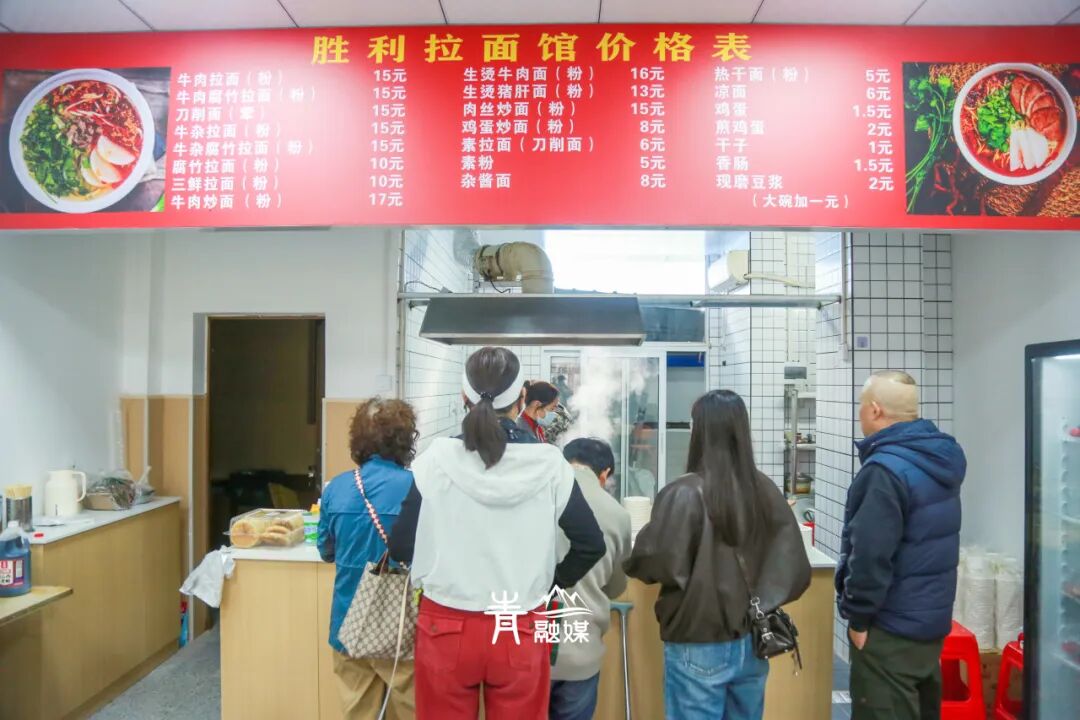 2010年左右,他们搬迁到隔壁的小门面,挂起了“胜利拉面馆”的招牌,这家二十余年的小摊,终于有了自己的落脚点,生意也在近几年慢慢回暖。
