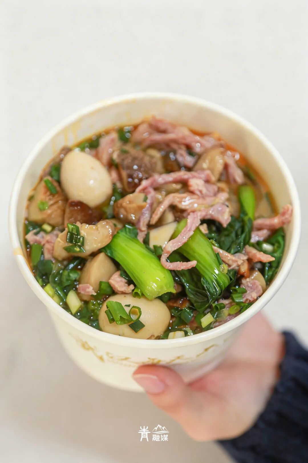 香菇是鲜味的先锋,肥厚软滑,咬下去仿佛在嚼一块吸饱了精华的“小海绵”,浓郁的菌香在口中爆开。肉丝则提供了扎实的满足感,瘦而不柴,嫩滑入味,带着朴实的肉香。最灵动的要数那几颗鹌鹑蛋,蛋白柔韧,蛋黄粉糯,在舌尖轻轻一抿就化开,留下细腻的香气。