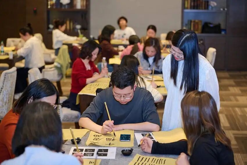 “工作压力大,练练书法,可以很好地缓解。平时是自己在家练,现在有机会向老师学习和大家交流,感觉很棒!”新世界国贸大厦白领李女士感叹道。在这里工作,不仅能享受优质的办公环境,更能在丰富的活动中感受幸福与成长。
