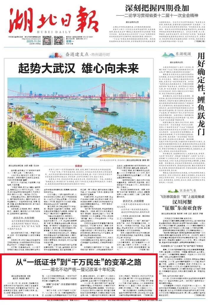 十年磨一剑。从理顺城乡产权体系到探索生态价值实现,从破解历史遗留问题到推动区域协同发展,湖北用十年时间,将一本不动产权证书打造成连接千家万户、激活发展动能、守护绿水青山的重要载体。
