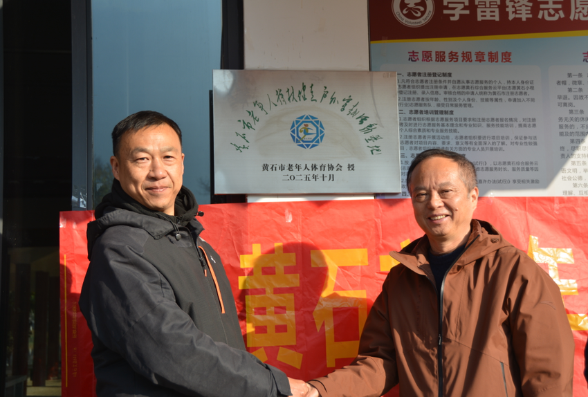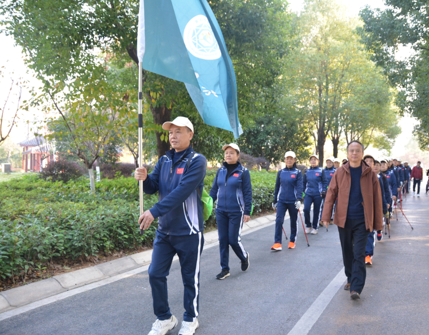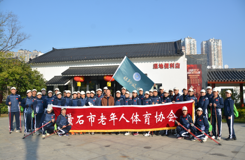 (通讯员 小鱼)11月22日上午,黄石市老年人体育协会持杖健走户外穿越活动基地揭牌仪式在磁湖湿地公园举行,市老年体协副主席陈汉松、磁湖湿地公园主任陈辉、市老年体协登山健走委员会主任叶小华、秘书长江正学及持杖健走户外穿越50名队员参加了揭牌仪式。随后全体队员们身着统一服装,持健身手杖精神抖擞、步伐矫健地健步在青山绿水间,与周围的自然美景相映成辉。整齐的队伍、昂扬的姿态、嘹亮的歌声成为湿地公园中一道靓丽的风景,吸引了众多市民驻足观看。